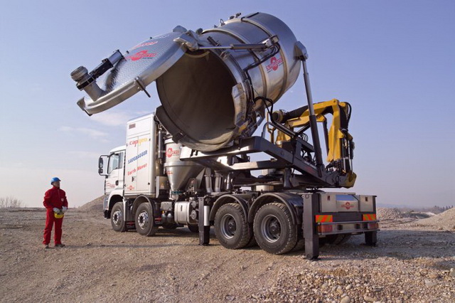 Inovativna tehnologija i međunarodno patentirani sistem cisterne za bacanja rotira na tri strane vozila i utovara od visine preko dva metra. Rotaciono hidraulično rame je snažno kao kod bagera. Jednostavan je za rukovanje i može da se dodaju razni priključci.